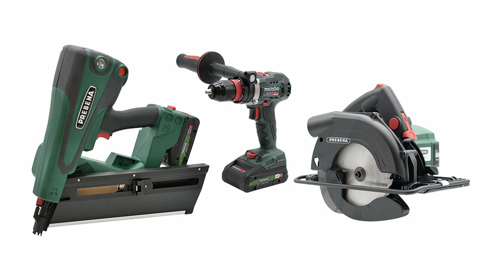 Der Prebena Druckluft-Akku-Nagler der PKT-Hybrid Technologie verarbeitet Rund- oder Halbkopf-Streifennägel von 65-100 mm. Sie sind die kraftvollsten schlauch- und kabellosen Nagler am Markt und treiben auch Nagelschrauben bis 90 mm problemlos ein.