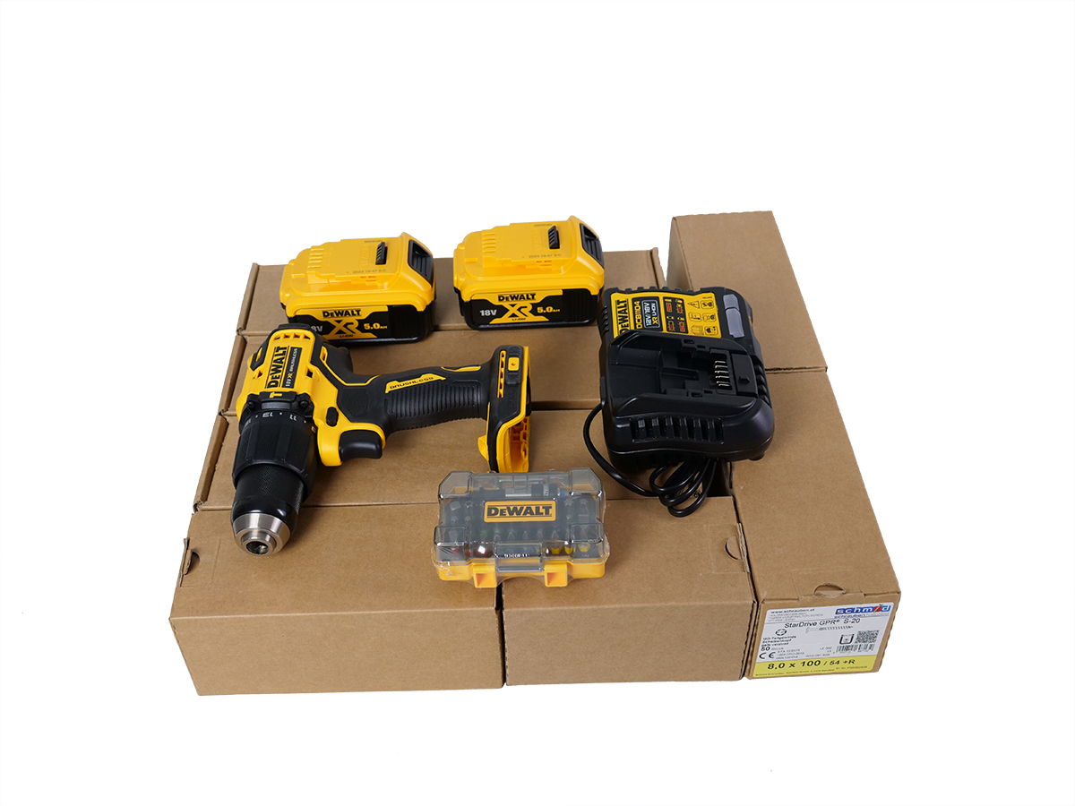 - DEWALT AKKU-Schlagbohrschrauber DCD709 18V/5 AH inkl. 2 Akkus und 1 Ladegerät