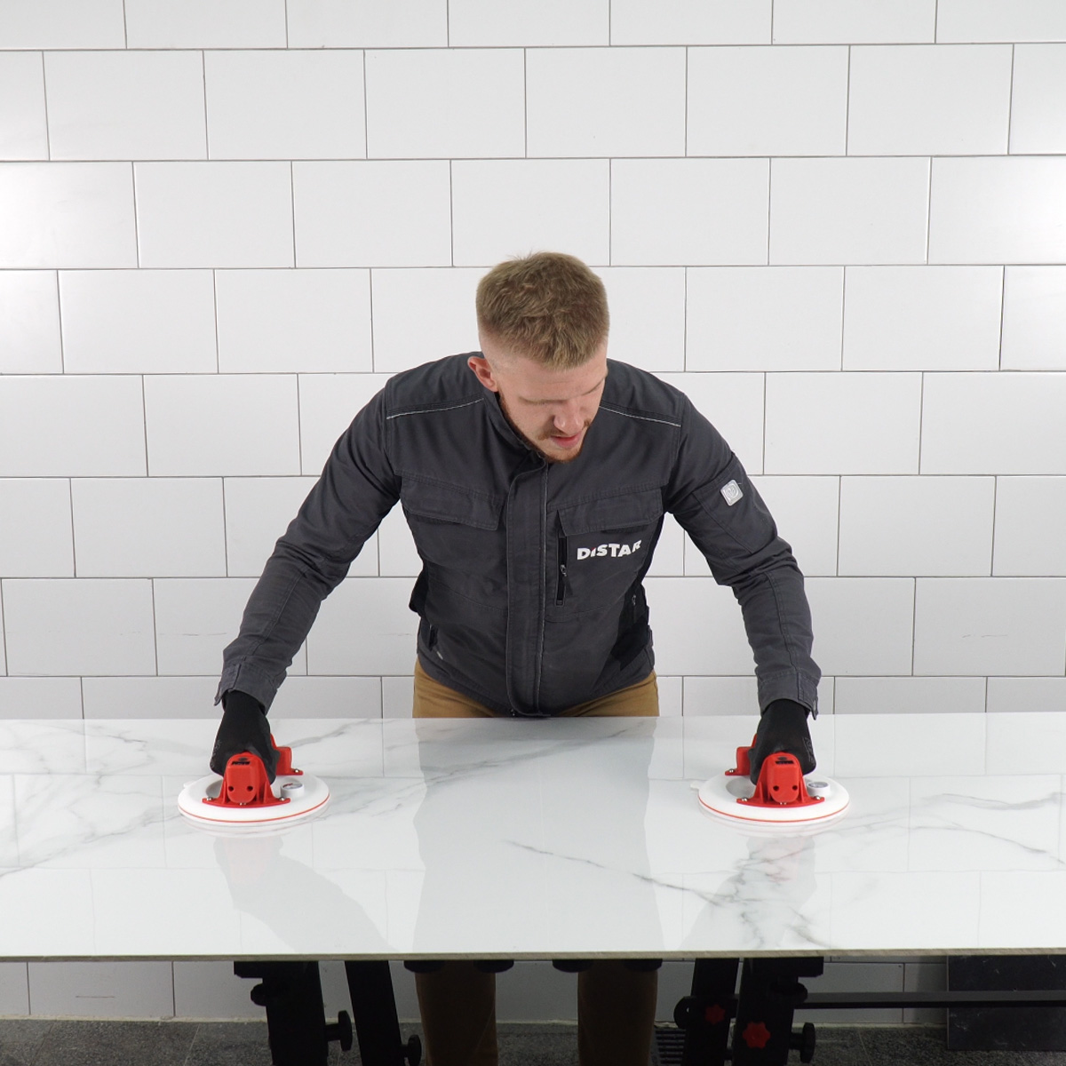 Der Transport und die Verlegung von großformatigen Fliesen ist einziemlich mühsamer, schwerer und anspruchsvoller Prozess.Herkömmliche mechanische Saugnäpfe oder Vorrichtungen erforderneine ständige Überwachung des Druckniveaus während des Transportsund der Verlegung von Fliesen, um zu verhindern, dass die Fliese verloren